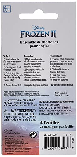 Click for More Images One package includes: 4 nail decals.Sticker sheet measures: 2" x 3. 5".Each pack comes with four sheets of stickers including ones of Anna, Elsa, Olaf and snowflakes.Apply them on your little one's nails or slip them into...