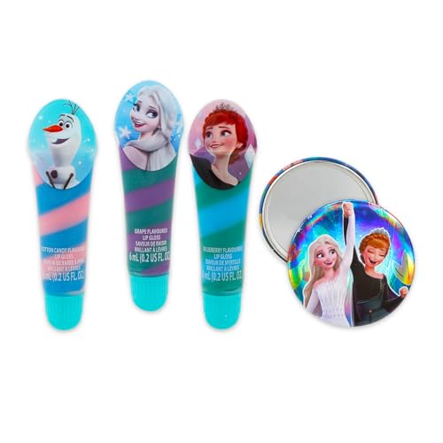 Click for More Images Frozen Lip Gloss Set - Bundle with 3 Frozen Gloss Tubes, and 1 Mirror, Frozen Stickers and More | Anna and Elsa Lip Gloss Kit.This Frozen lip gloss kit includes 3 tubes of lip gloss in various fun flavors and one mirror...
