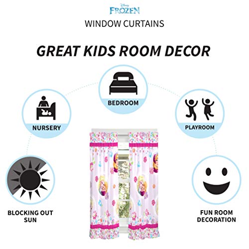 Click for More Images DISNEY FROZEN DESIGN: Make her room feel a little more enchanting with these flowery Anna and Elsa curtains from the popular Disney movie, Frozen.FUN ROOM DECORATION: Perfect for her bedroom, nursery or playroom, these...