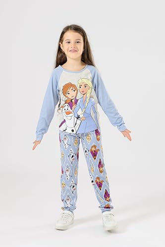 Disney Frozen Elsa, Anna, and Olaf Girls Long Sleeve Shirt and Pants Set for Toddler and Little Kids