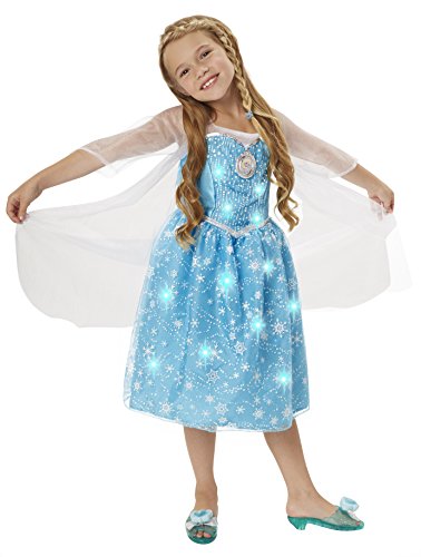 Click for More Images She'll look enchanting in elsa's dress from disney's frozenThis beautiful elsa dress features magical motion activated lights and musicWatch her twirl as the dress lights up and begins to play elsa's iconic song "Let it...