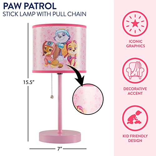 KID FRIENDLY DESIGN: Light up a room with this decorative kids stick lamp designed with Paw Patrol printed graphics. Stick lamp features iconic characters Everest, Liberty and Skye. A fun theme to add to a kids’ bedroom, play space or study area with this pink Paw Patrol Stick Table lamp. The design on this stick lamp will add a pop of color along with your child’s favorite characters.