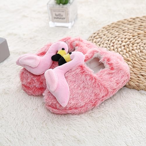 Csfry Toddler Girls’ Flamingo Slipper Cute Cartoon Warm Winter House Shoes,7-8Toddler
